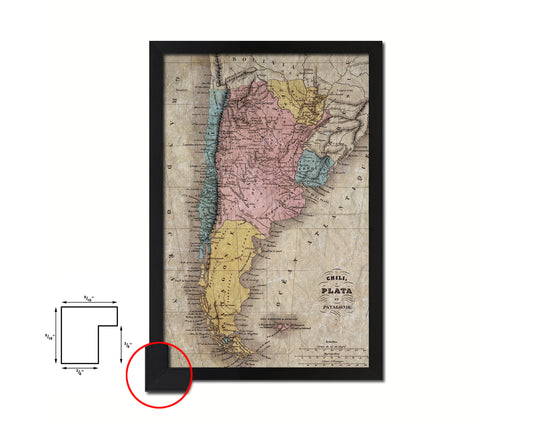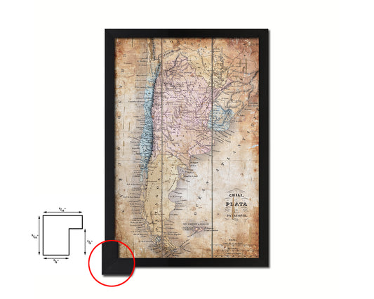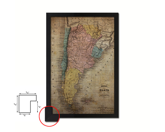 Argentina Chile Patagonia Antique Map Wood Framed Print Art Wall Decor Gifts