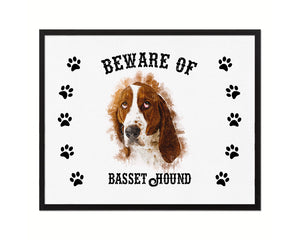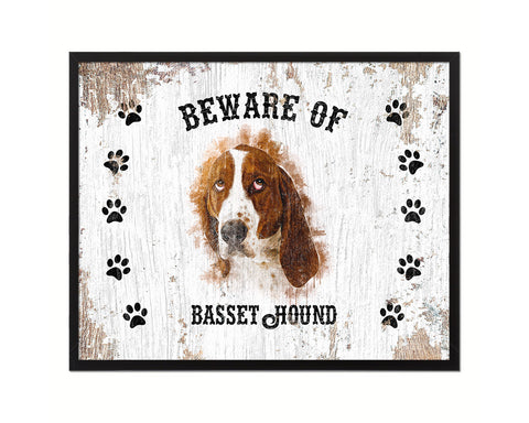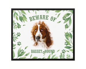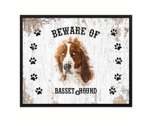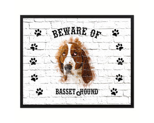 Beware of Basset Hound Sign Wood Framed Print Wall Art Decor Gifts