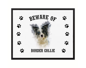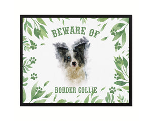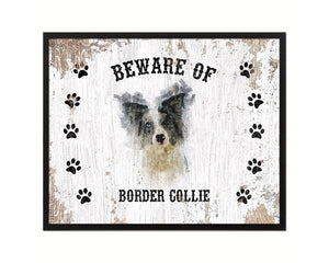 Beware of Border Collie Sign Wood Framed Print Wall Art Decor Gifts