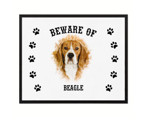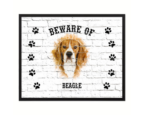 Beware of Beagle Sign Wood Framed Print Wall Art Decor Gifts