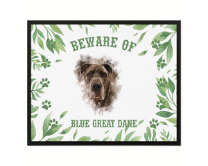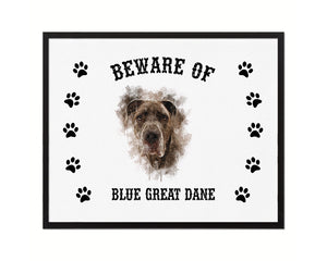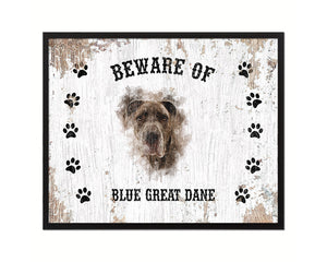 Beware of Blue Great Dane Sign Wood Framed Print Wall Art Decor Gifts