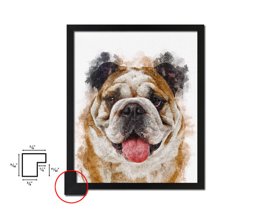 English Bulldog Dog Puppy Portrait Framed Print Pet Watercolor Wall Decor Art Gifts