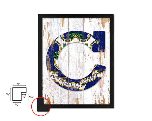 Connecticut State Initial Flag Wood Framed Paper Print Decor Wall Art Gifts, Wood