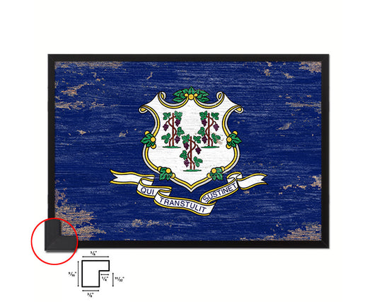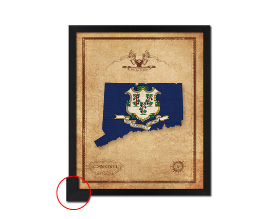 Connecticut State Vintage Flag Wood Framed Paper Print Wall Art Decor Gifts