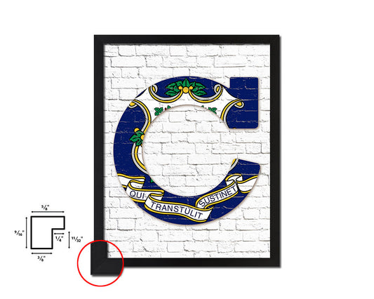 Connecticut State Initial Flag Wood Framed Paper Print Decor Wall Art Gifts, Brick