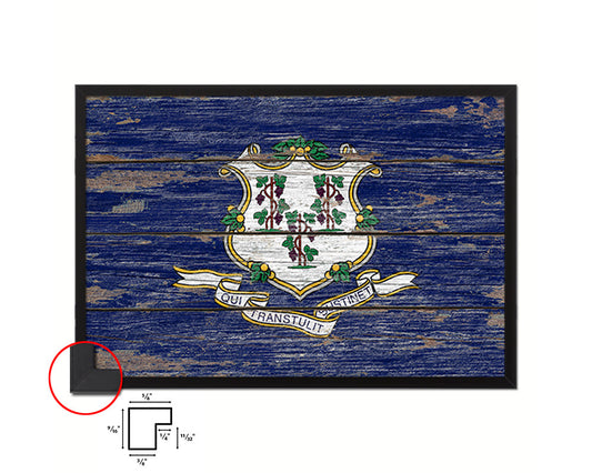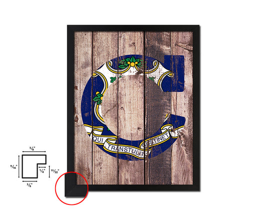 Connecticut State Rustic Flag Wood Framed Paper Prints Wall Art Decor Gifts