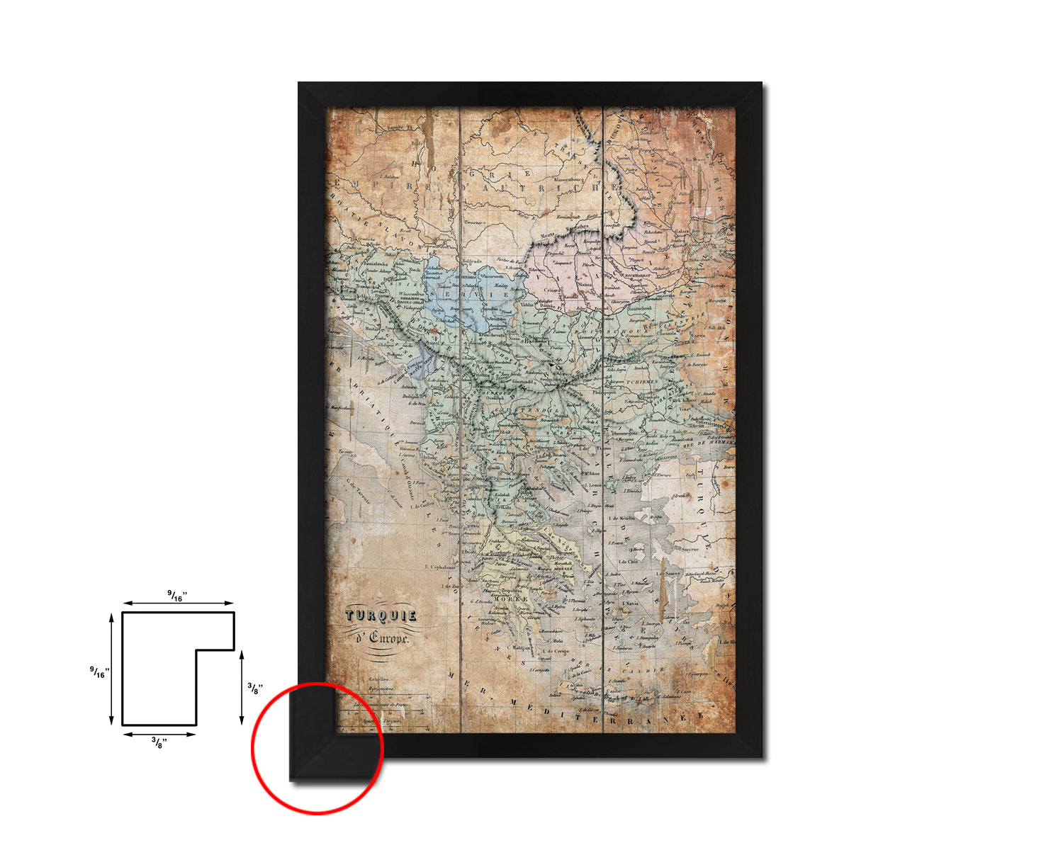 Greece and Balkans Antique Map Wood Framed Print Art Wall Decor Gifts