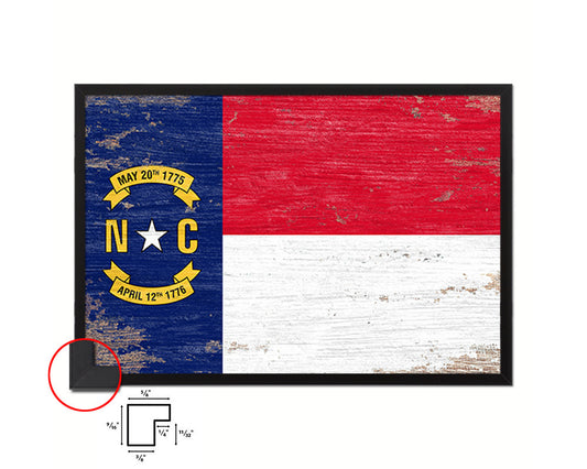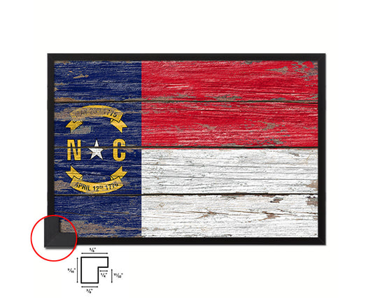 North Carolina State Rustic Flag Wood Framed Paper Prints Wall Art Decor Gifts