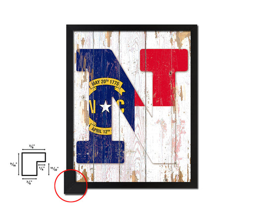 North Carolina State Initial Flag Wood Framed Paper Print Decor Wall Art Gifts, Wood