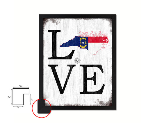 North Carolina Shabby Chic Love Sign Wood Framed Paper Print Decor Wall Art Gifts
