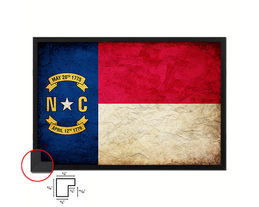 North Carolina State Vintage Flag Wood Framed Paper Print Wall Art Decor Gifts