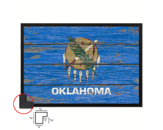 Oklahoma State Rustic Flag Wood Framed Paper Prints Wall Art Decor Gifts