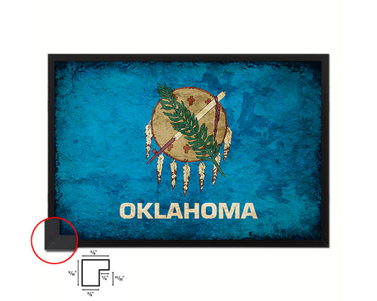 Oklahoma State Vintage Flag Wood Framed Paper Print Wall Art Decor Gifts
