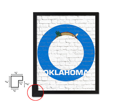 Oklahoma State Initial Flag Wood Framed Paper Print Decor Wall Art Gifts, Brick