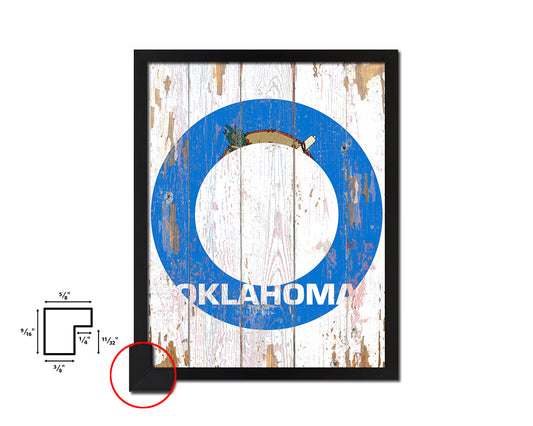 Oklahoma State Shabby Chic Flag Wood Framed Paper Print Wall Art Decor Gifts