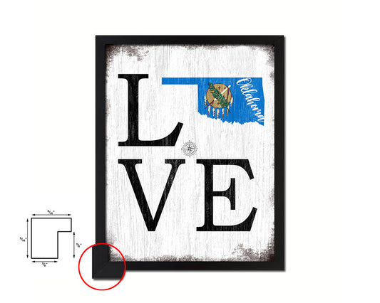 Oklahoma Shabby Chic Love Sign Wood Framed Paper Print Decor Wall Art Gifts