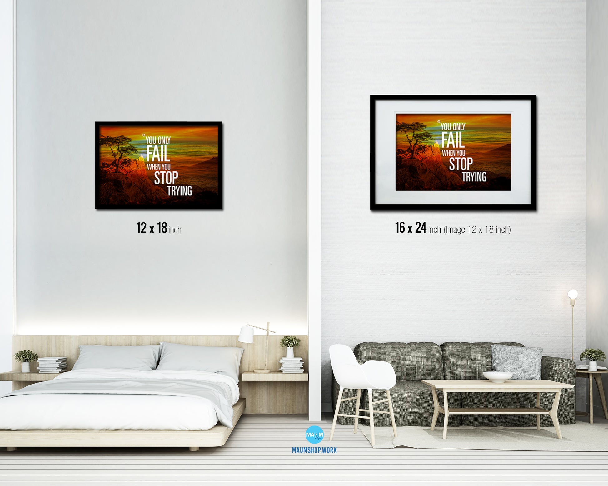 You only fail when you stop trying Quote Framed Print Wall Decor Art Gifts