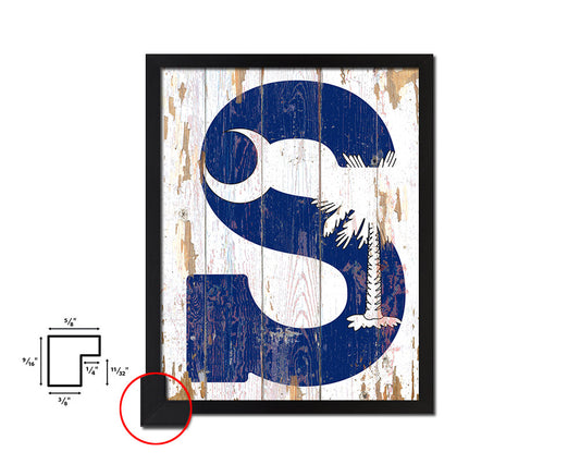 South Carolina State Initial Flag Wood Framed Paper Print Decor Wall Art Gifts, Wood