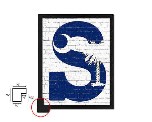 South Carolina State Initial Flag Wood Framed Paper Print Decor Wall Art Gifts, Brick