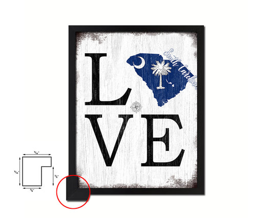 South Carolina Shabby Chic Love Sign Wood Framed Paper Print Decor Wall Art Gifts