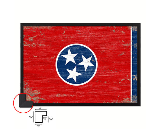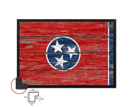 Tennessee State Rustic Flag Wood Framed Paper Prints Wall Art Decor Gifts