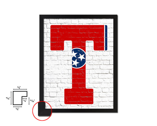 Tennessee State Initial Flag Wood Framed Paper Print Decor Wall Art Gifts, Brick