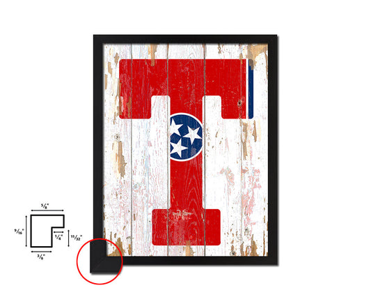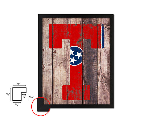Tennessee State Initial Flag Wood Framed Paper Print Decor Wall Art Gifts, Wood