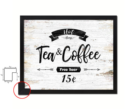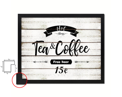 Hot Tea & Coffee Vintage Sign Fine Art Paper Prints Wood Frame Wall Art Decor Gifts