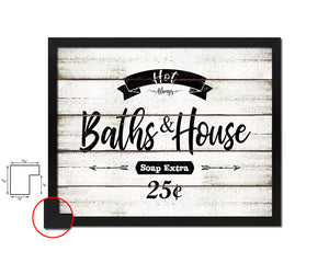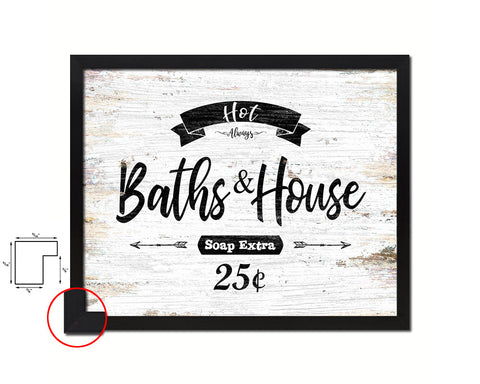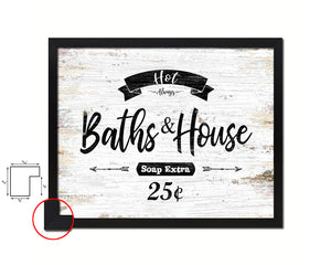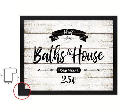 Hot Baths & House Vintage Sign Fine Art Paper Prints Wood Frame Wall Art Decor Gifts
