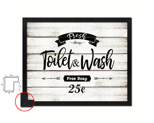 Fresh Toilet & Wash Vintage Sign Fine Art Paper Prints Wood Frame Wall Art Decor Gifts