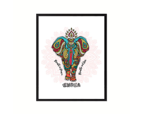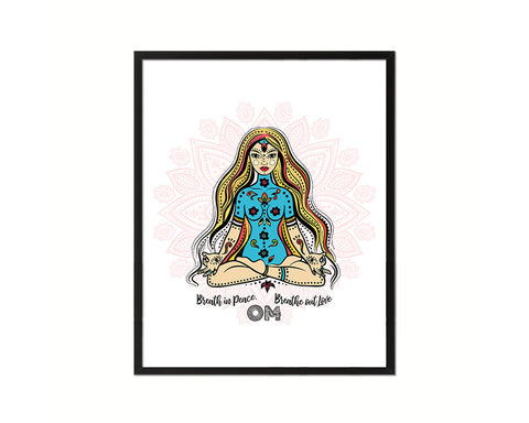 Breath in peace, Breathe out love India Yoga Wood Framed Print Wall Decor Art Gifts