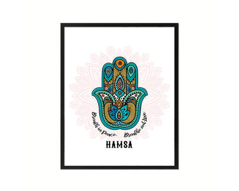 Breath in peace, Breathe out love Hamsa Yoga Wood Framed Print Wall Decor Art Gifts