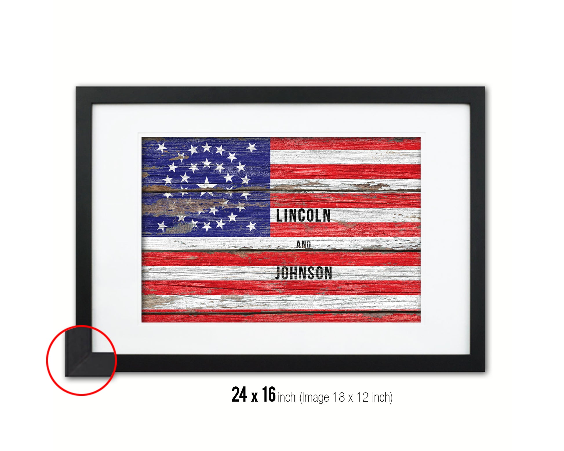 34 Stars Civil War Wood Rustic Flag Wood Framed Print Wall Art Decor Gifts
