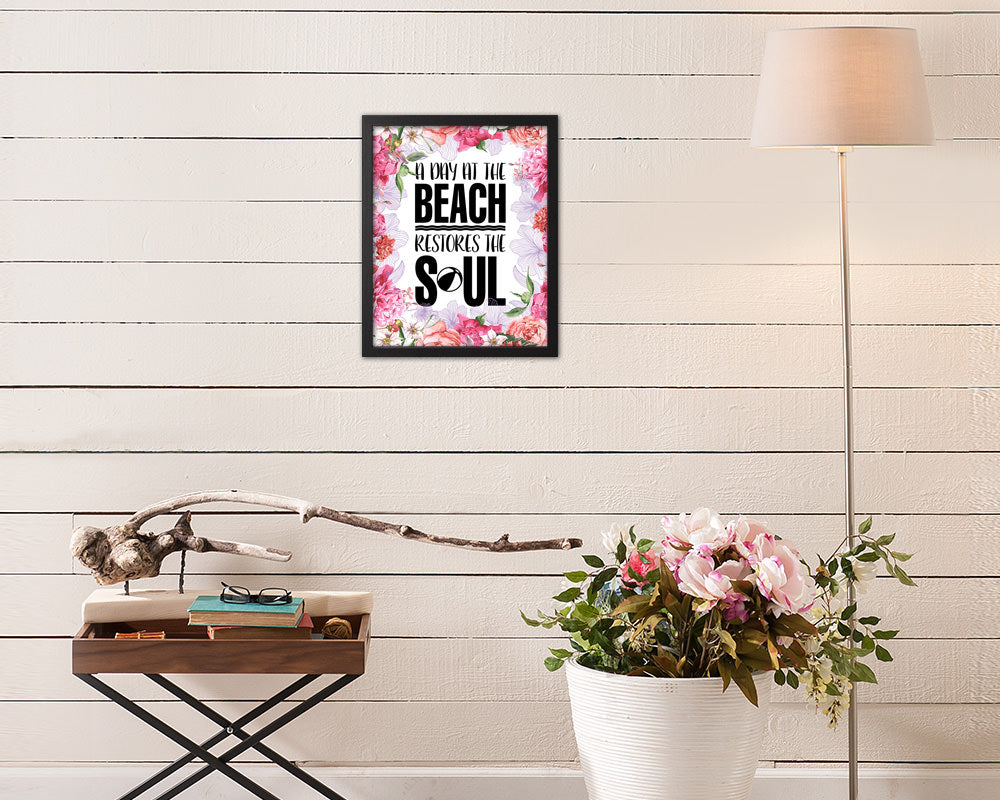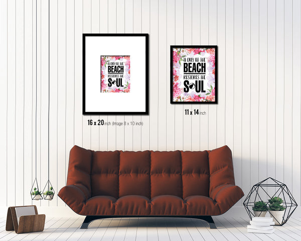 A day at the beach restores the soul Quote Framed Print Home Decor Wall Art Gifts
