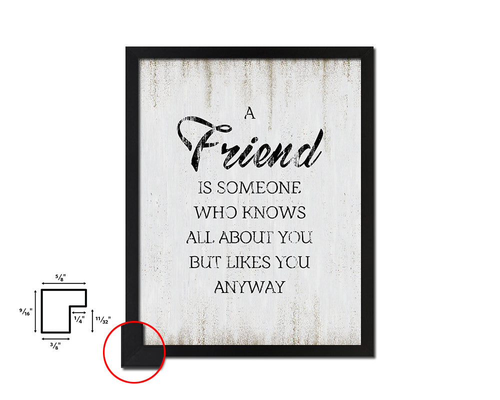 A friend is someone who knows all Quote Wood Framed Print Wall Decor Art