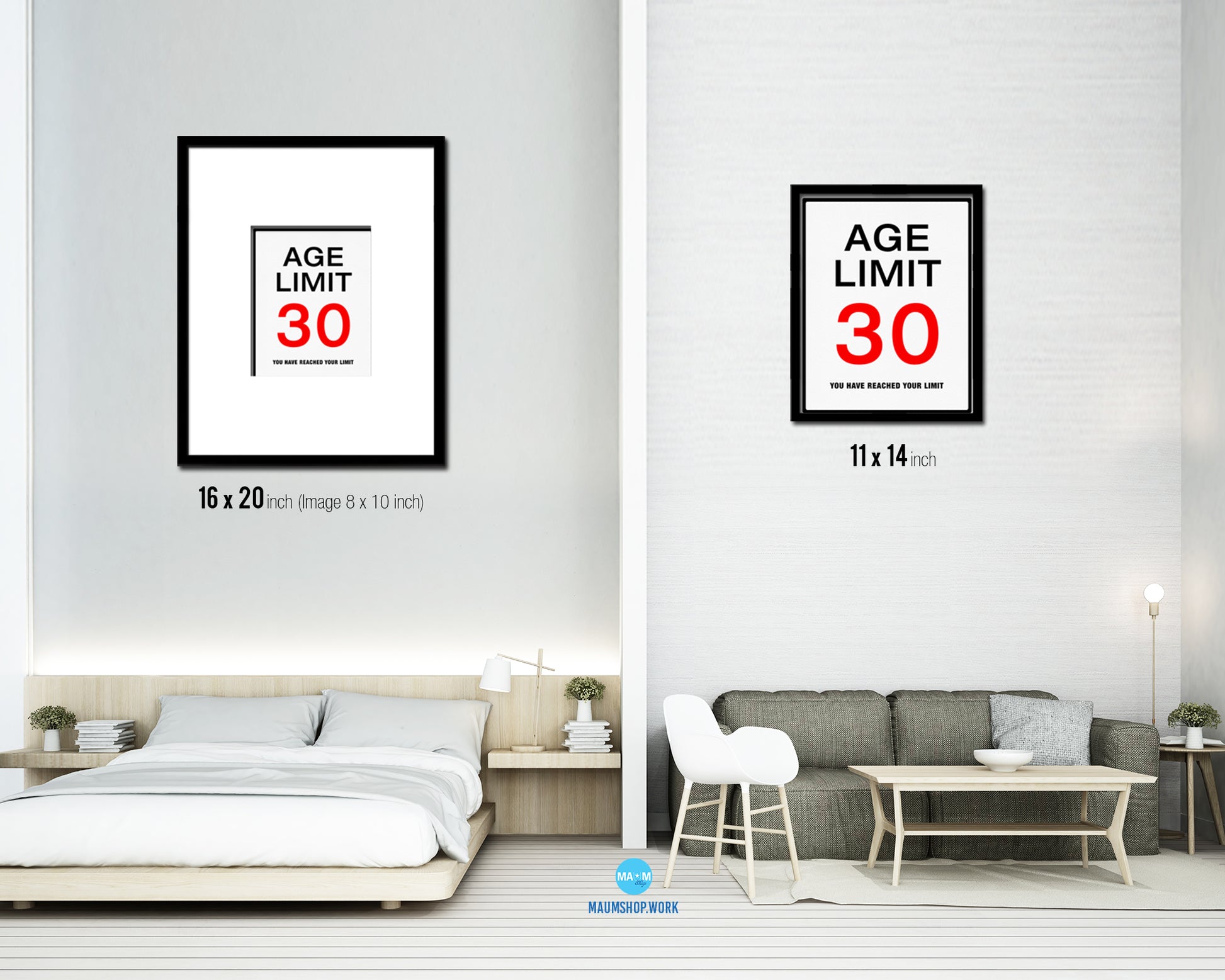 Age limit 30 you have reached your limit Notice Danger Sign Framed Print Home Decor Wall Art Gifts