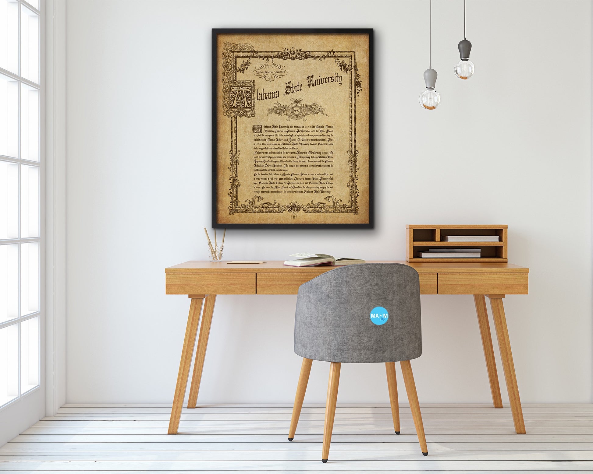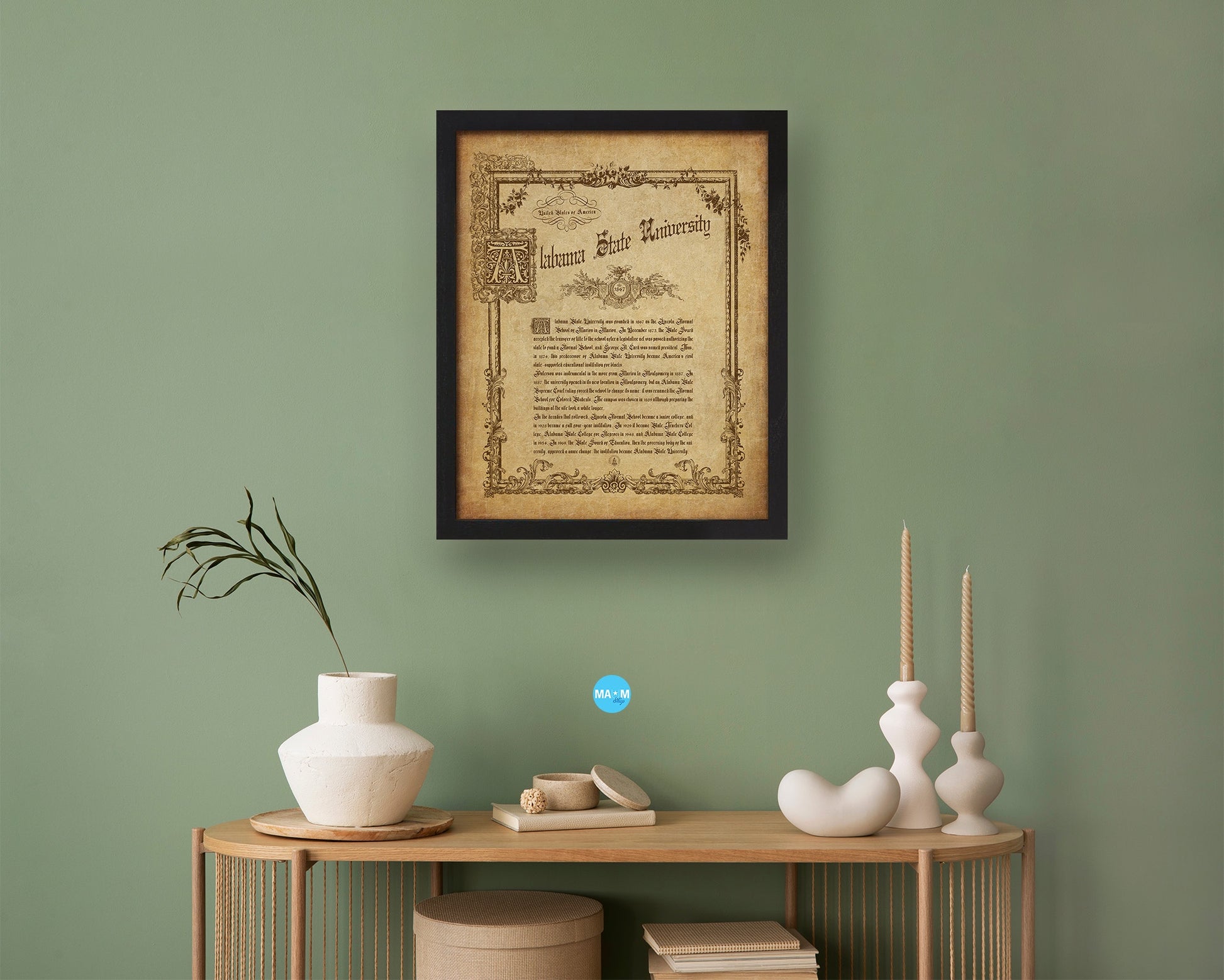 Alabama State University, Alabama, Custom Framed Document Print Wall Art Decor Gifts