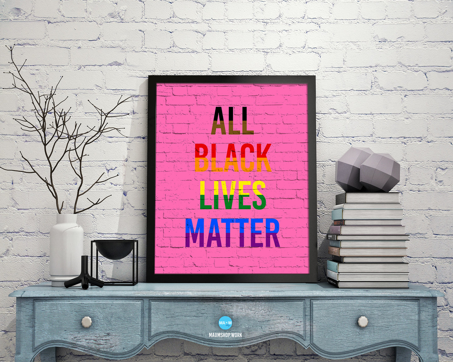 All Black Lives Matter Rainbow Pride Peace Right Justice Poster Wood Framed Wall Decor Gifts