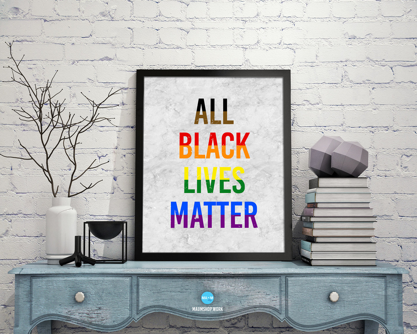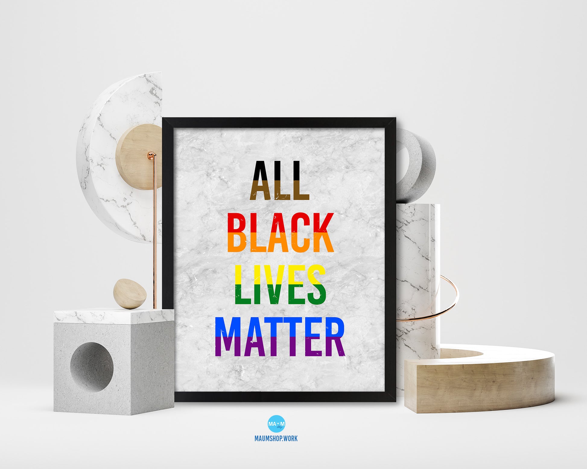 All Black Lives Matter Rainbow Pride Peace Right Justice Poster Wood Framed Wall Decor Gifts