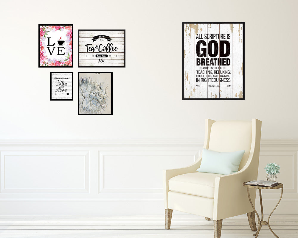 All scripture is god breathed and is useful for teaching Quote Wood Framed Print Wall Decor Art Gifts