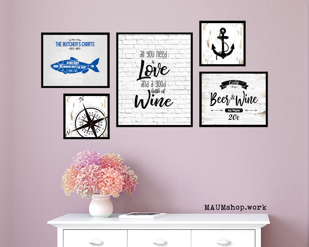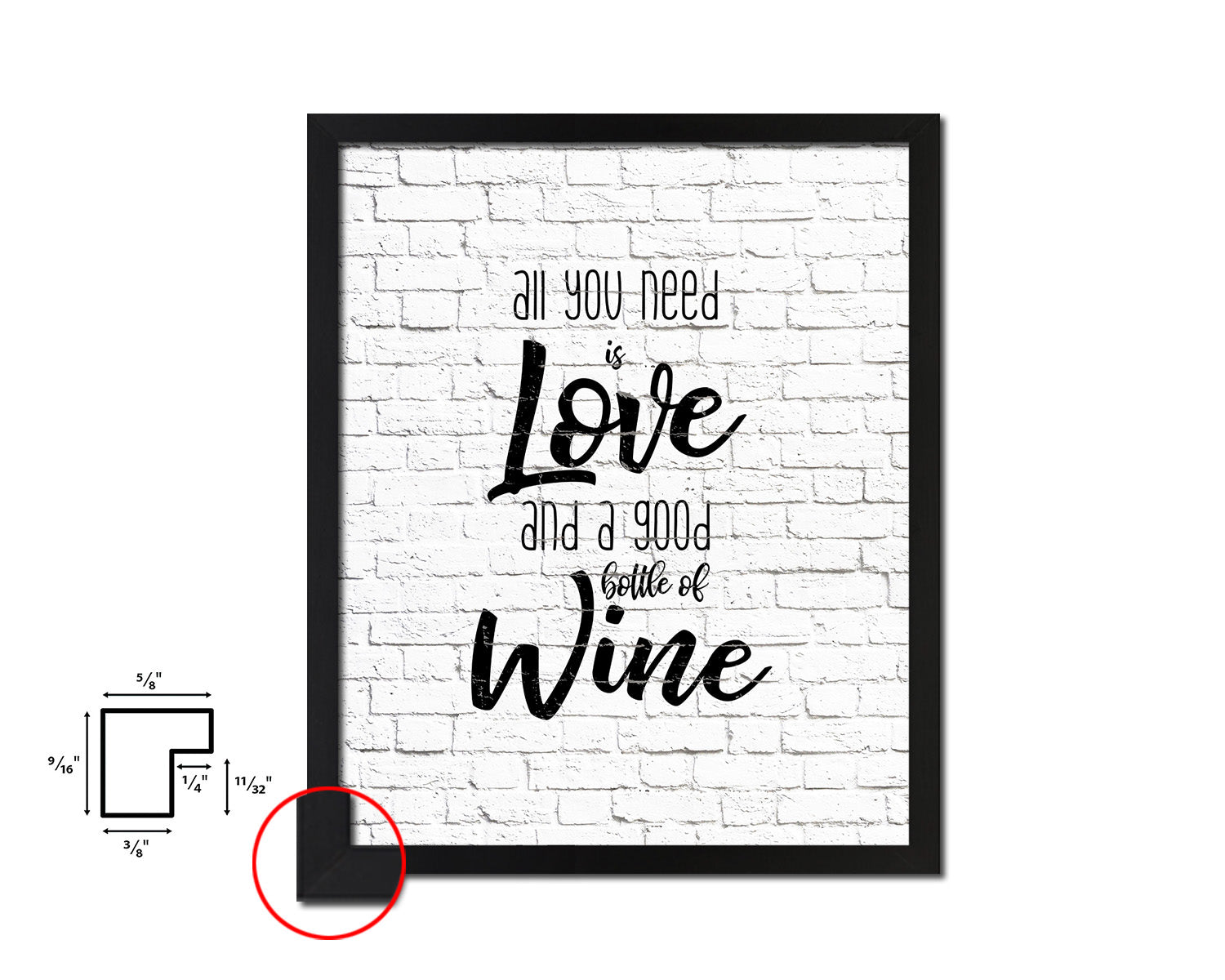 All you need is love and a good bottle Quote Wood Framed Print Wall Decor Art Gifts