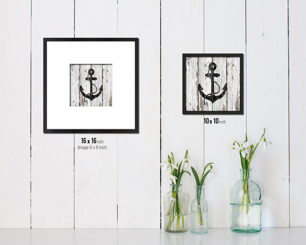 Anchor Nautical Wood Framed Gifts Ocean Beach Fishing Home Decor Wall Art Prints