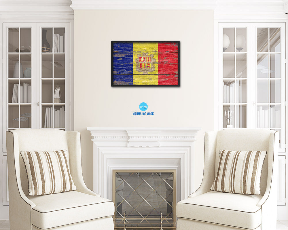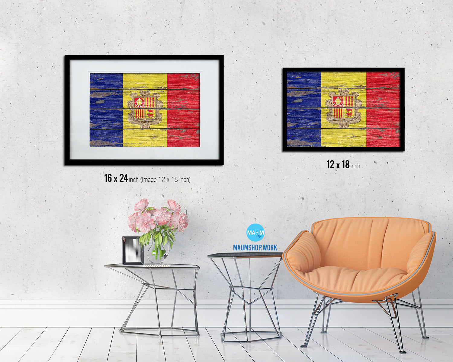 Andorra Country Wood Rustic National Flag Wood Framed Print Wall Art Decor Gifts