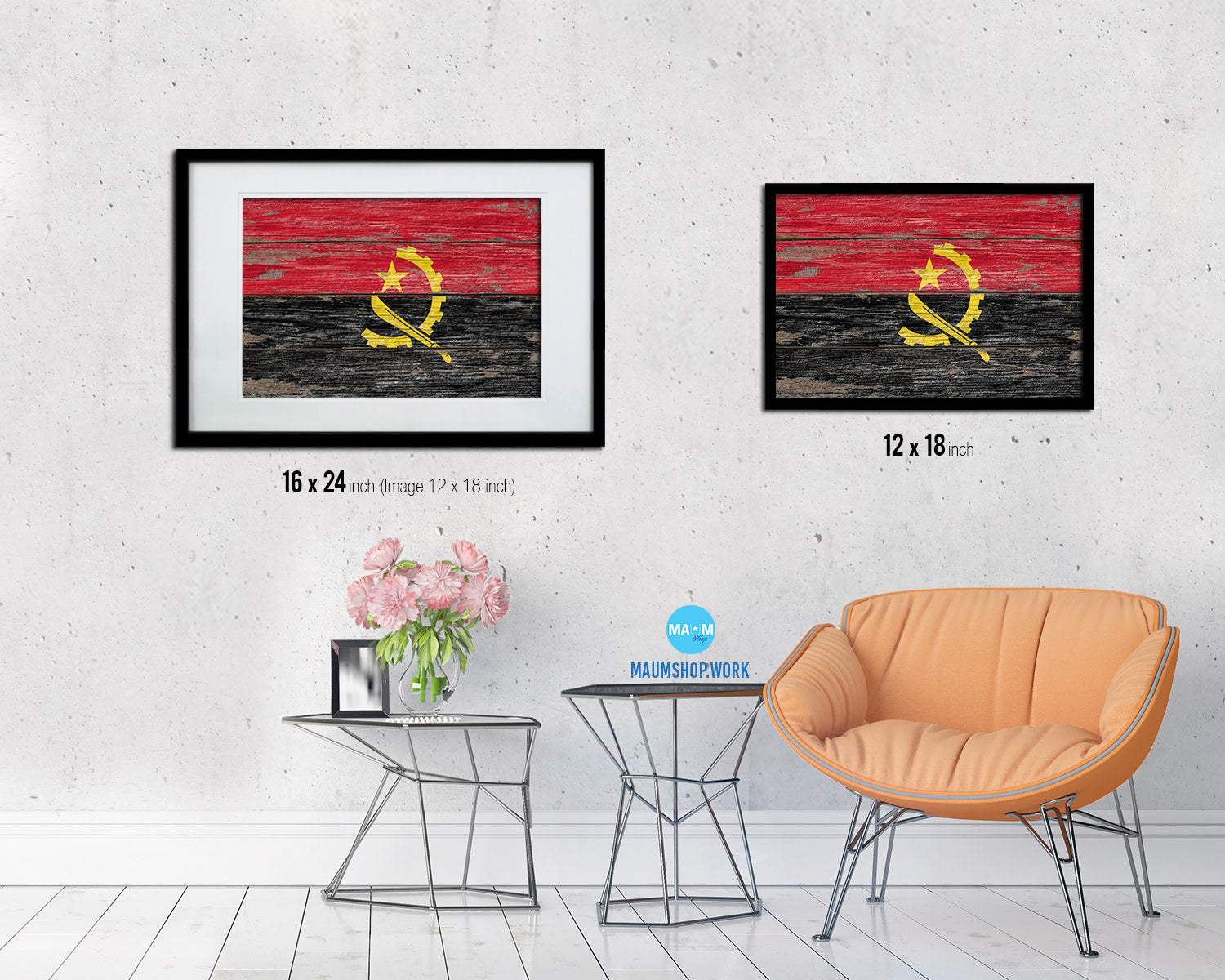 Angola Country Wood Rustic National Flag Wood Framed Print Wall Art Decor Gifts