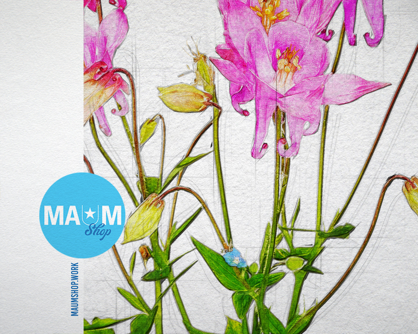 Aquilegia vulgaris Sketch Plants Art Wood Framed Print Wall Decor Gifts