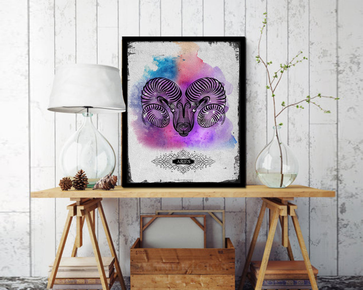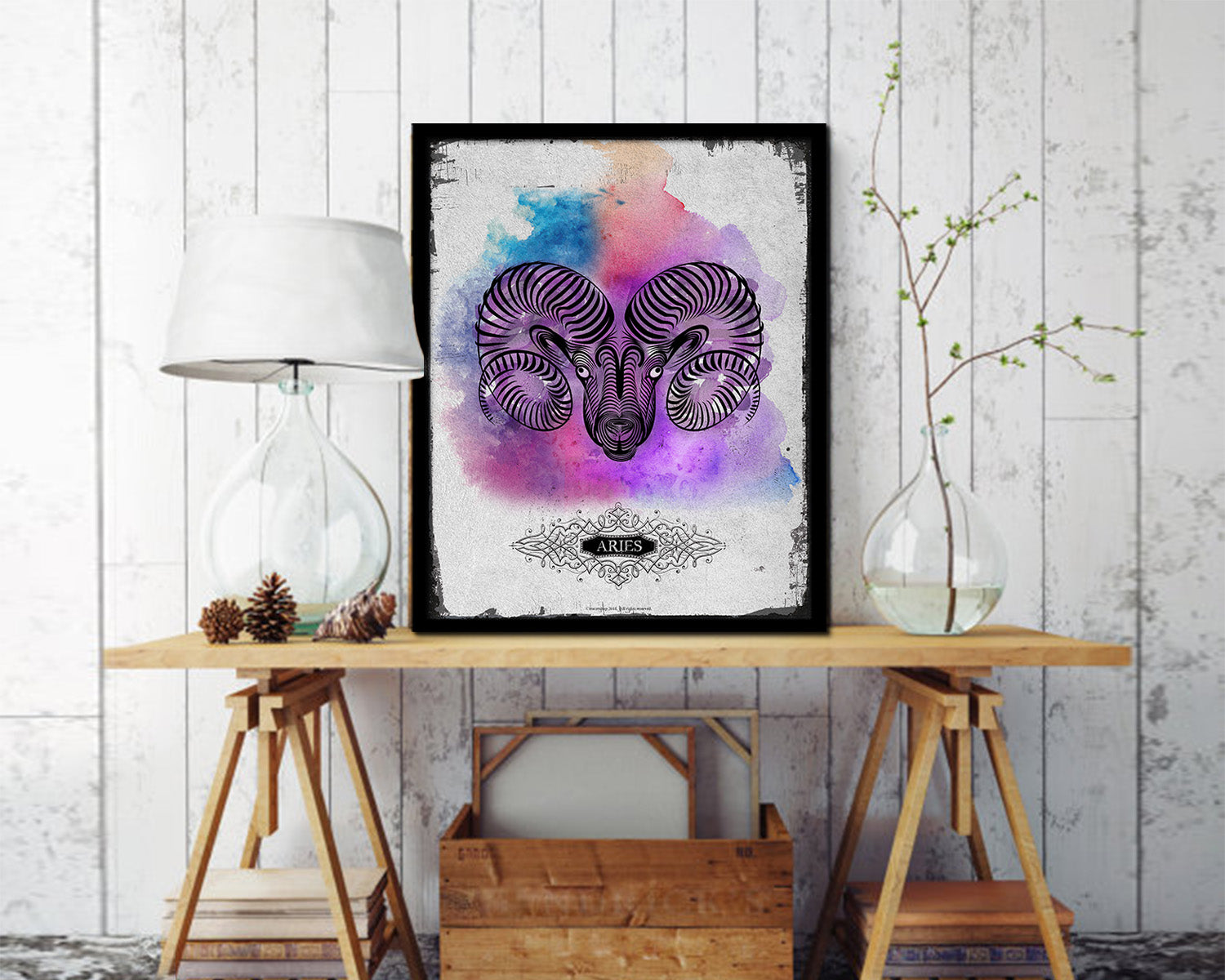 Aries Constellation Prediction Yearly Horoscope Wood Framed Paper Print Wall Art Decor Gifts