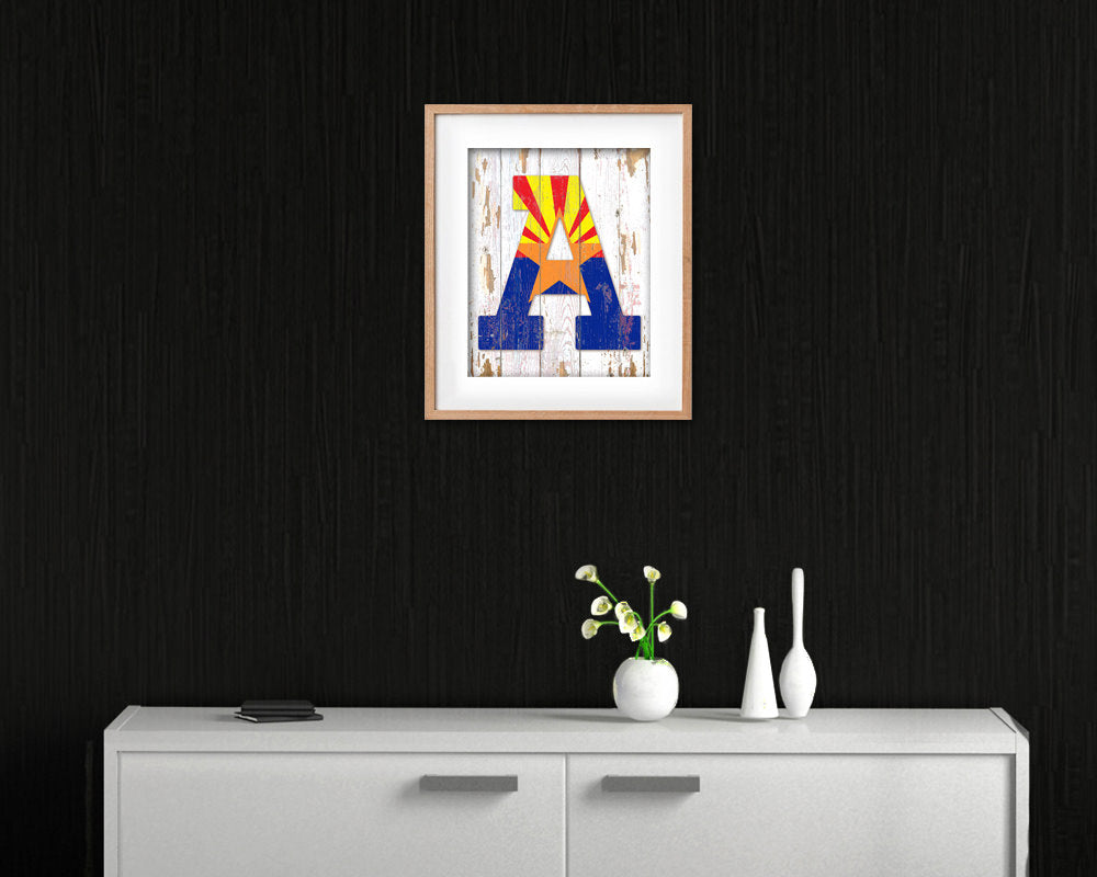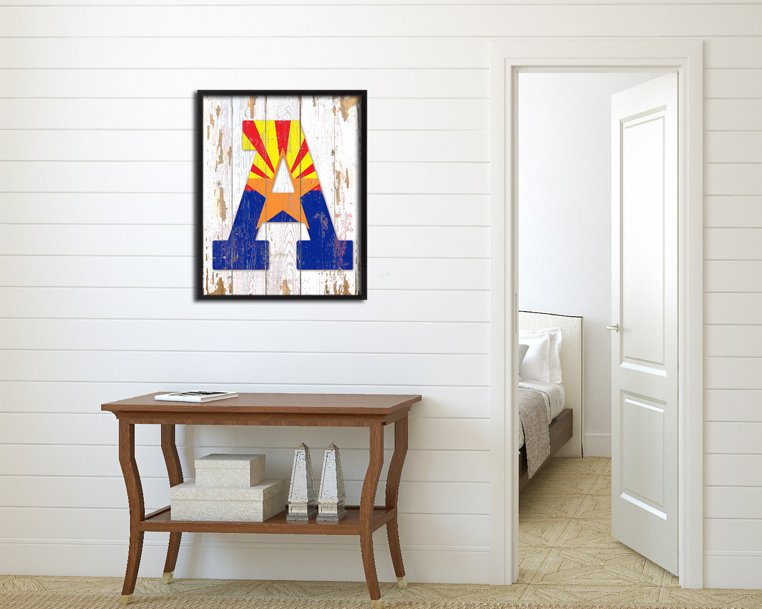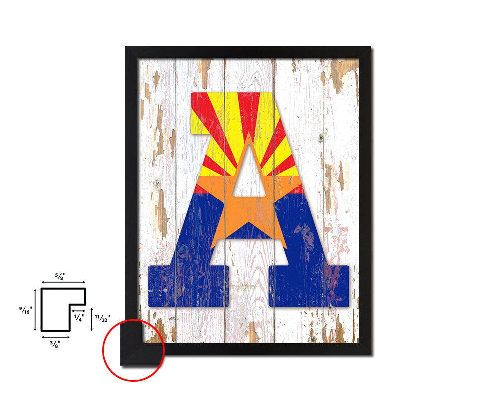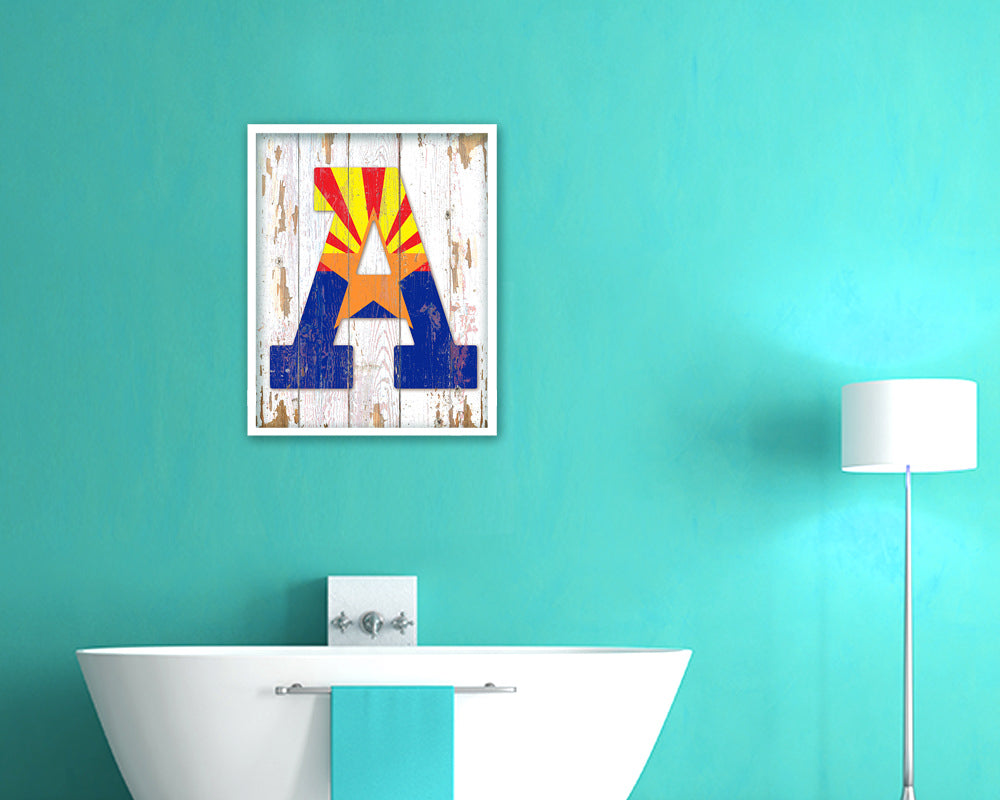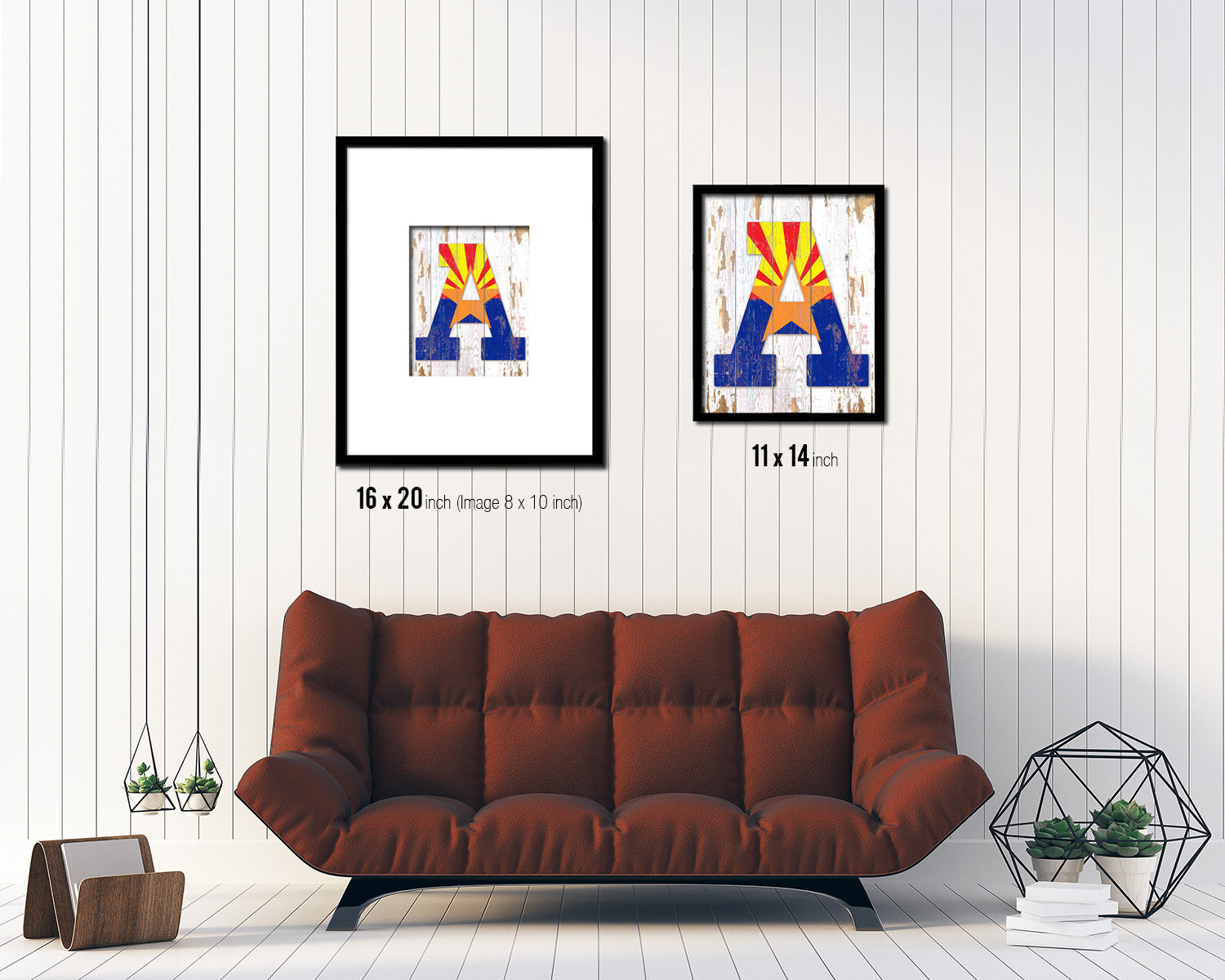 Arizona State Initial Flag Wood Framed Paper Print Decor Wall Art Gifts, Beach