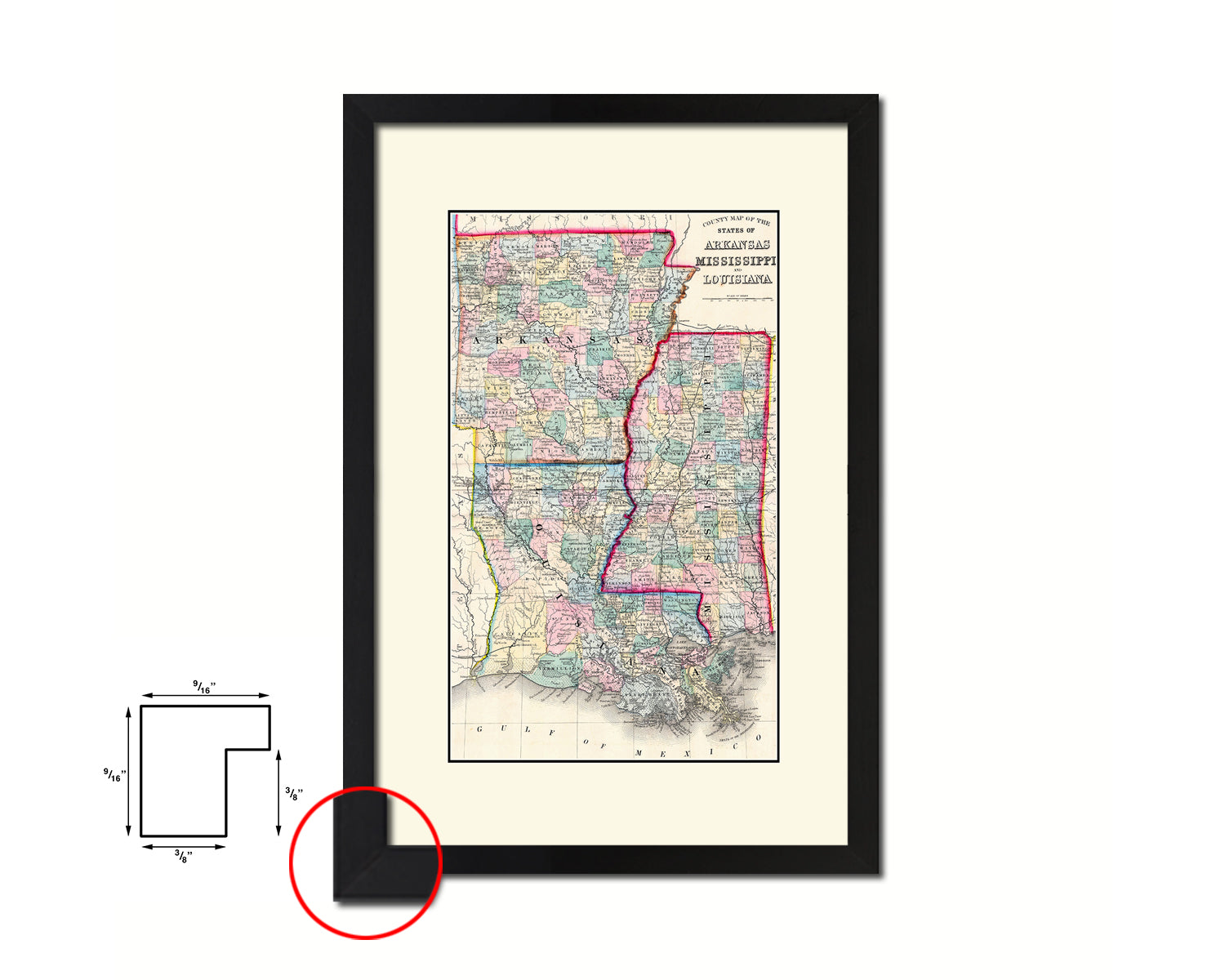 Arkansas Louisiana Mississippi Old Map Wood Framed Print Art Wall Decor Gifts