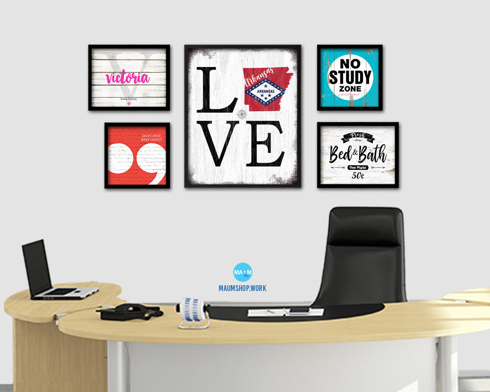 Arkansas Shabby Chic Love Sign Wood Framed Paper Print Decor Wall Art Gifts