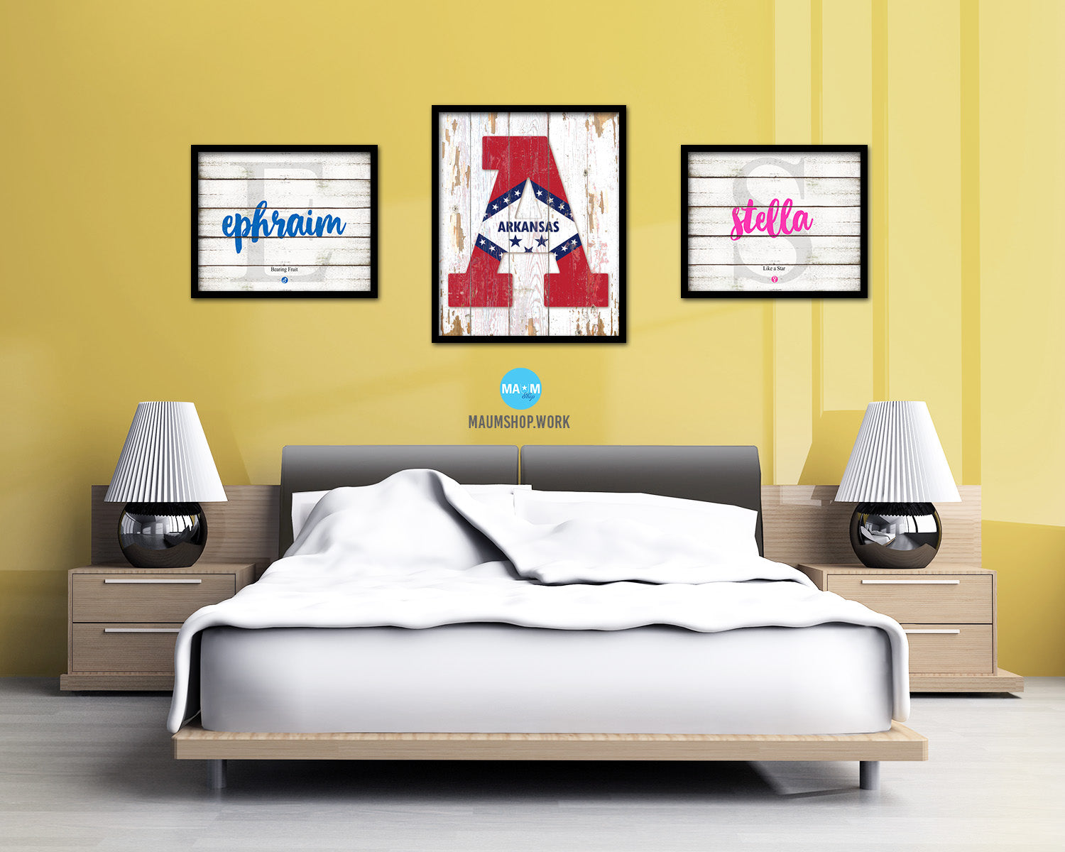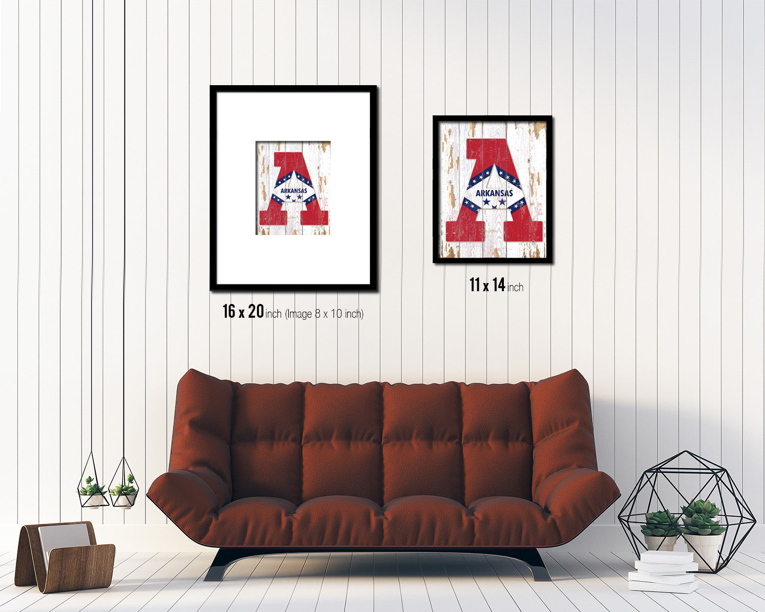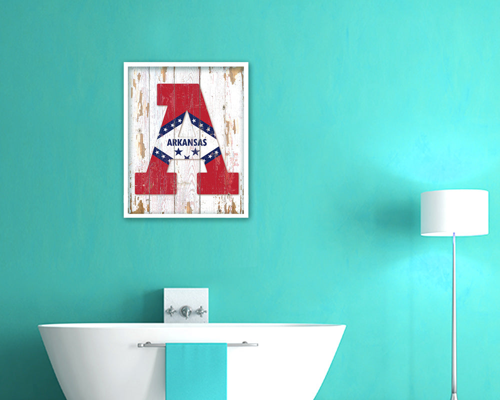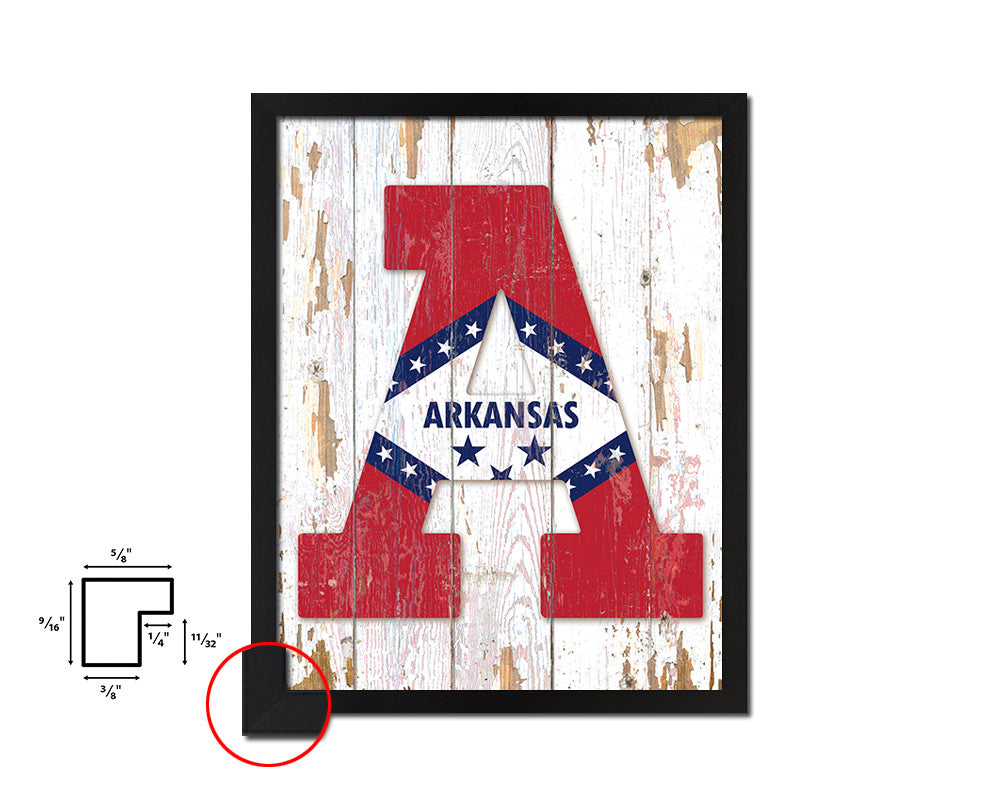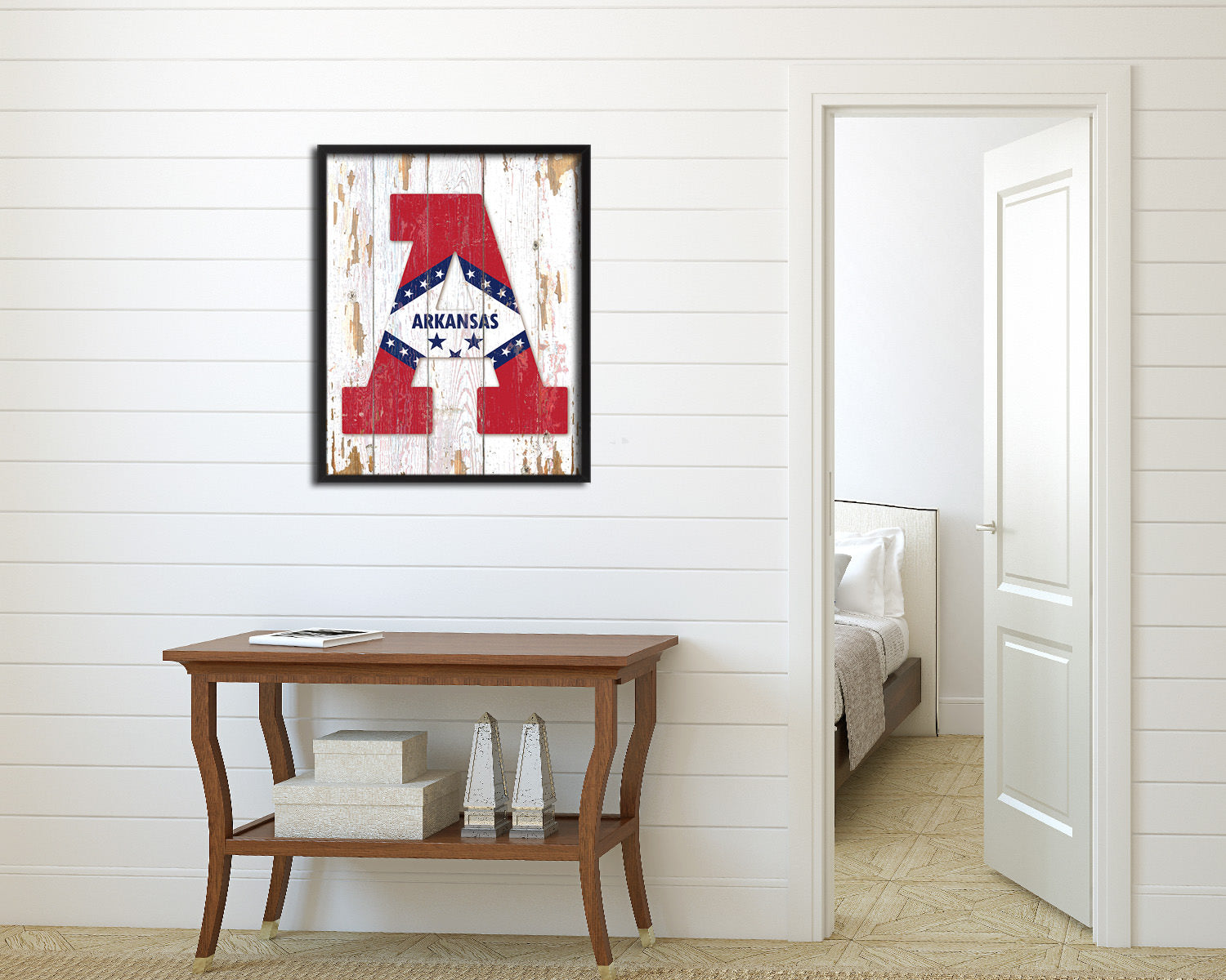 Arkansas State Initial Flag Wood Framed Paper Print Decor Wall Art Gifts, Beach